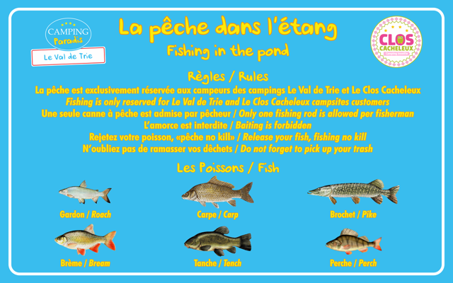 Located just 100 metres from the campsite, enjoy a 2,500 m² fishing pond set in a preserved natural environment: the Sources de la Trie.
